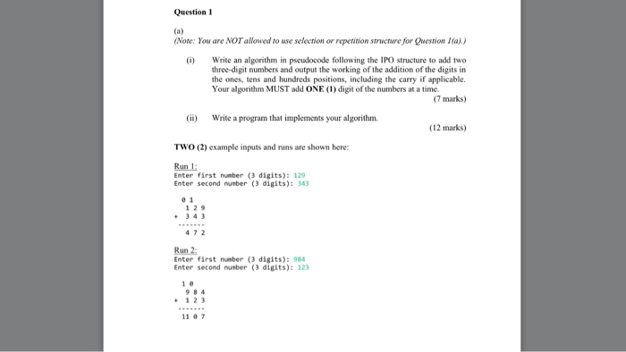 Algorithm For Addition Of Three Numbers. For example, when we add the 4 and 9 from the problem on the board we have to carry over the answer (13) into the correct place value spots. When we add numbers that need to be carried over we can only carry over a digit into the right spot.