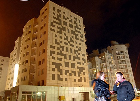 Like an enormous crossword puzzle, each letter fits into a designated box on the giant grid that makes up the sides of the building.