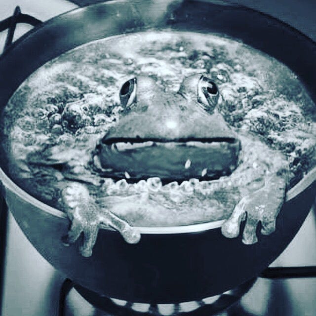 Put a frog in a pot full of water and start heating the water.