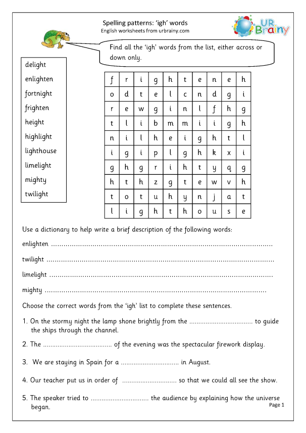 Ie and igh word search. Bright, fight, high, light, might, night, right, sigh, sight, tight. Phonics word families phonics words list and flashcards picture composition prek activities prek worksheets.