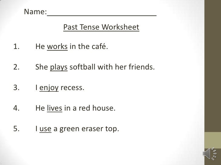 Simple Past Tense Worksheets. Esl level 2 by mpadfield. Fill in the sentences with the correct form (past simple) of the appropriate verb, and then match the sentences to the pictures.