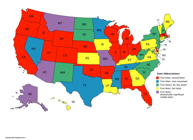 As there isn't a standard format to the 50 state abbreviations we are left with memorizing them!