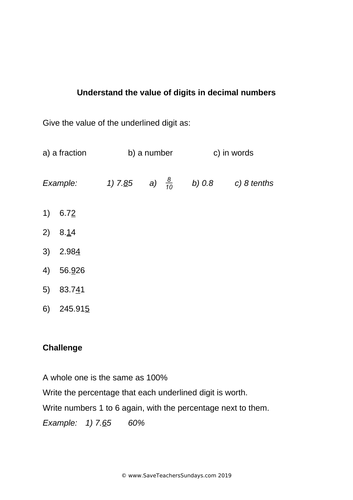 Value Of Digits In Decimal Numbers. Scroll down the page for more examples and solutions. A decimal number (based on the number 10) contains a decimal point.